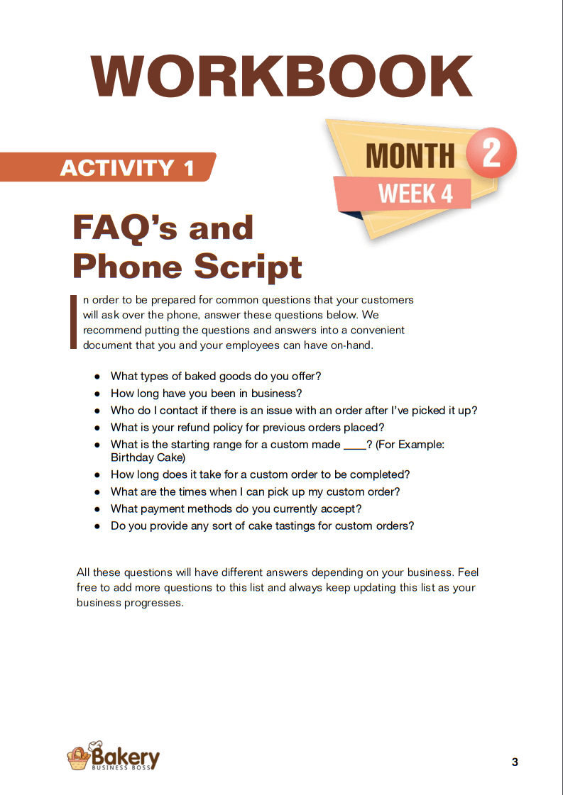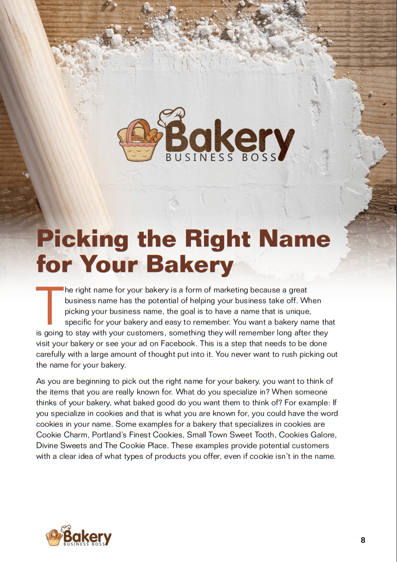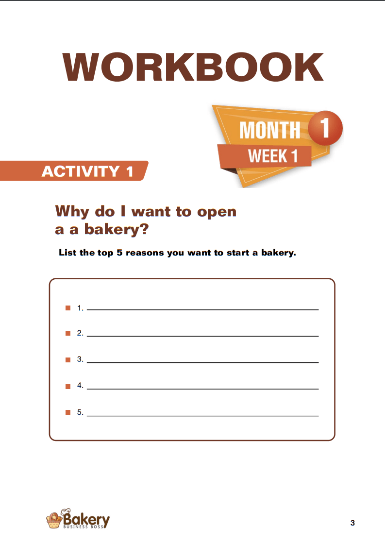 How to Start a Bakery Business Course and Workbook Sample Pages. Click on Images to Enlarge.