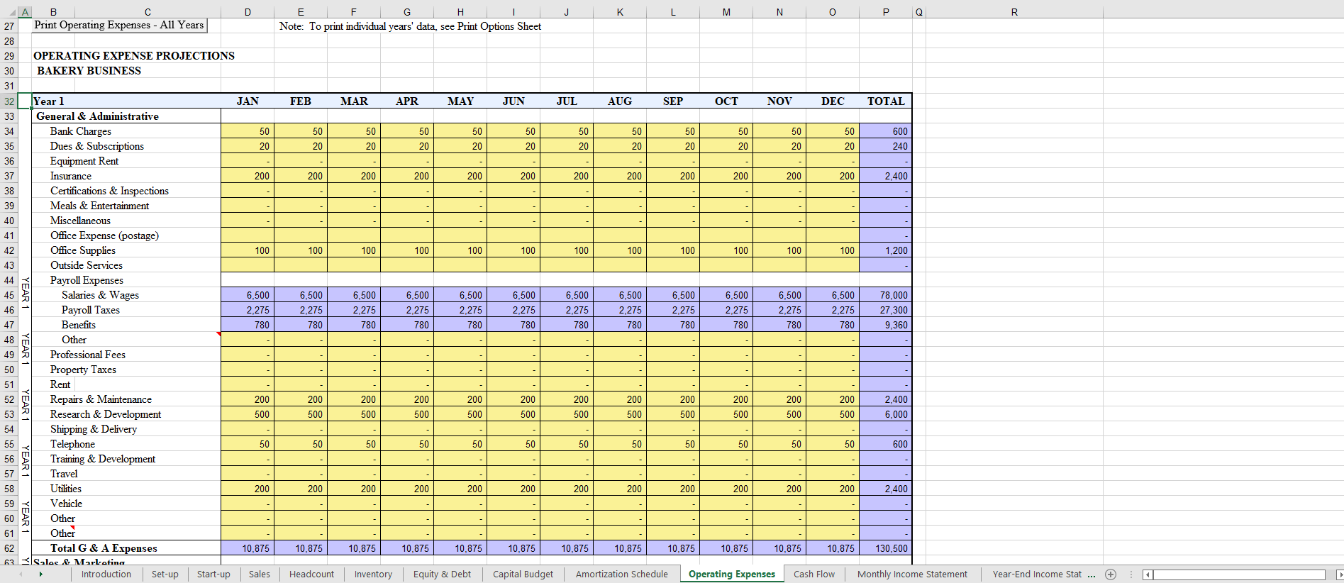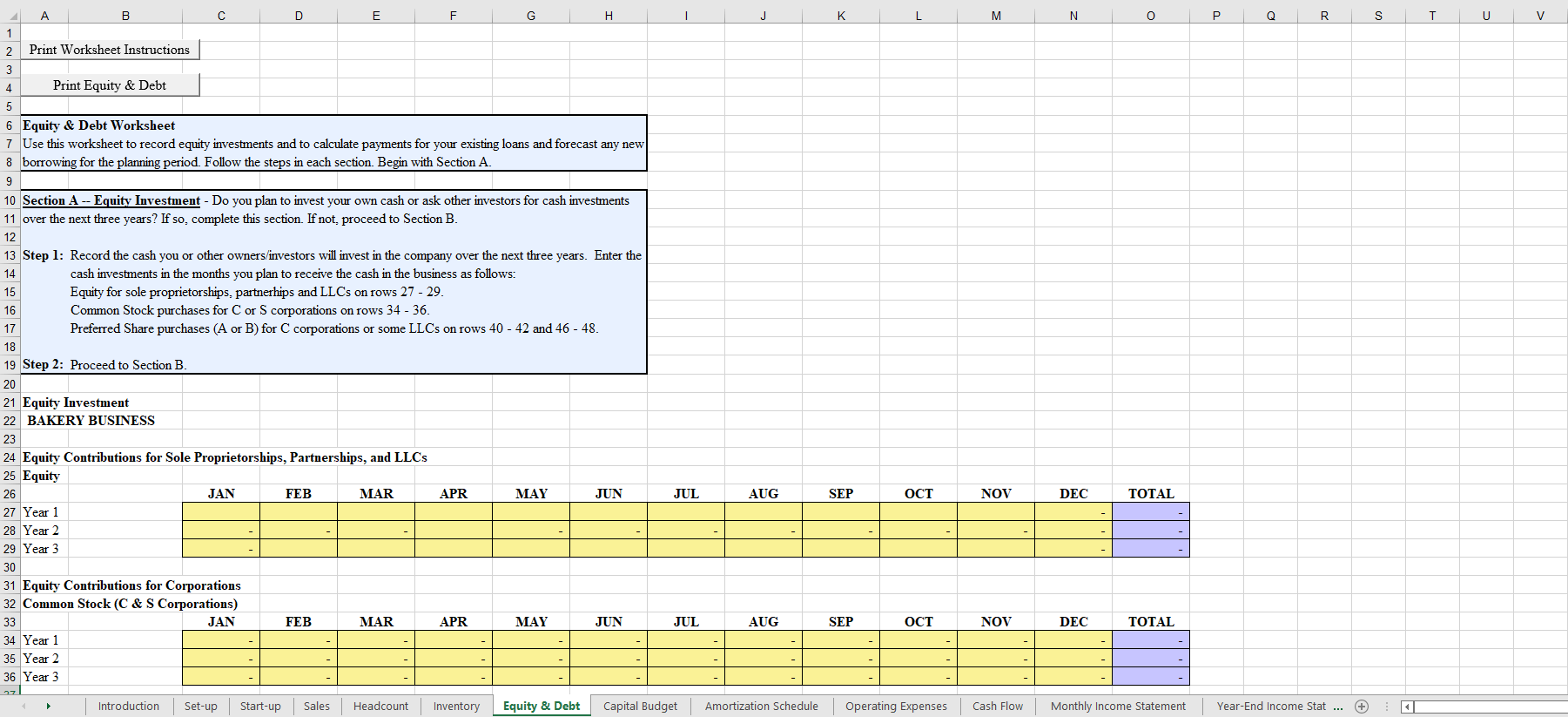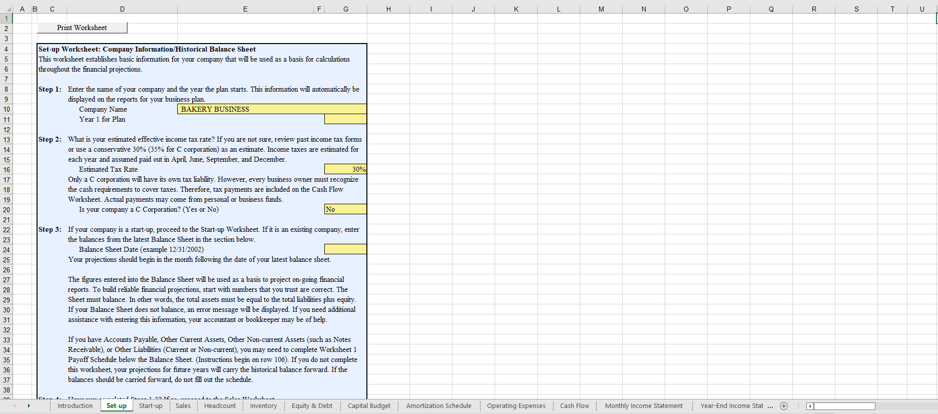 Bakery Business Excel Fill-In-the-Blank Financial Worksheet with instructions to help you calculate your finances Sample Pages. Click on Images to Enlarge.