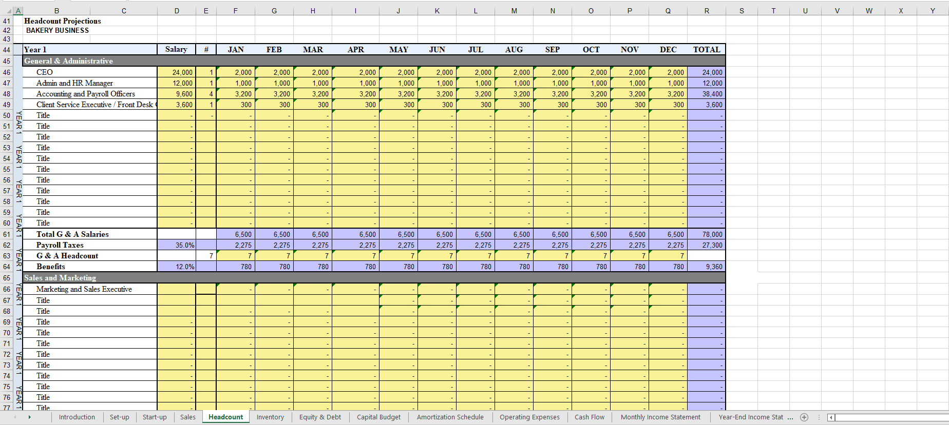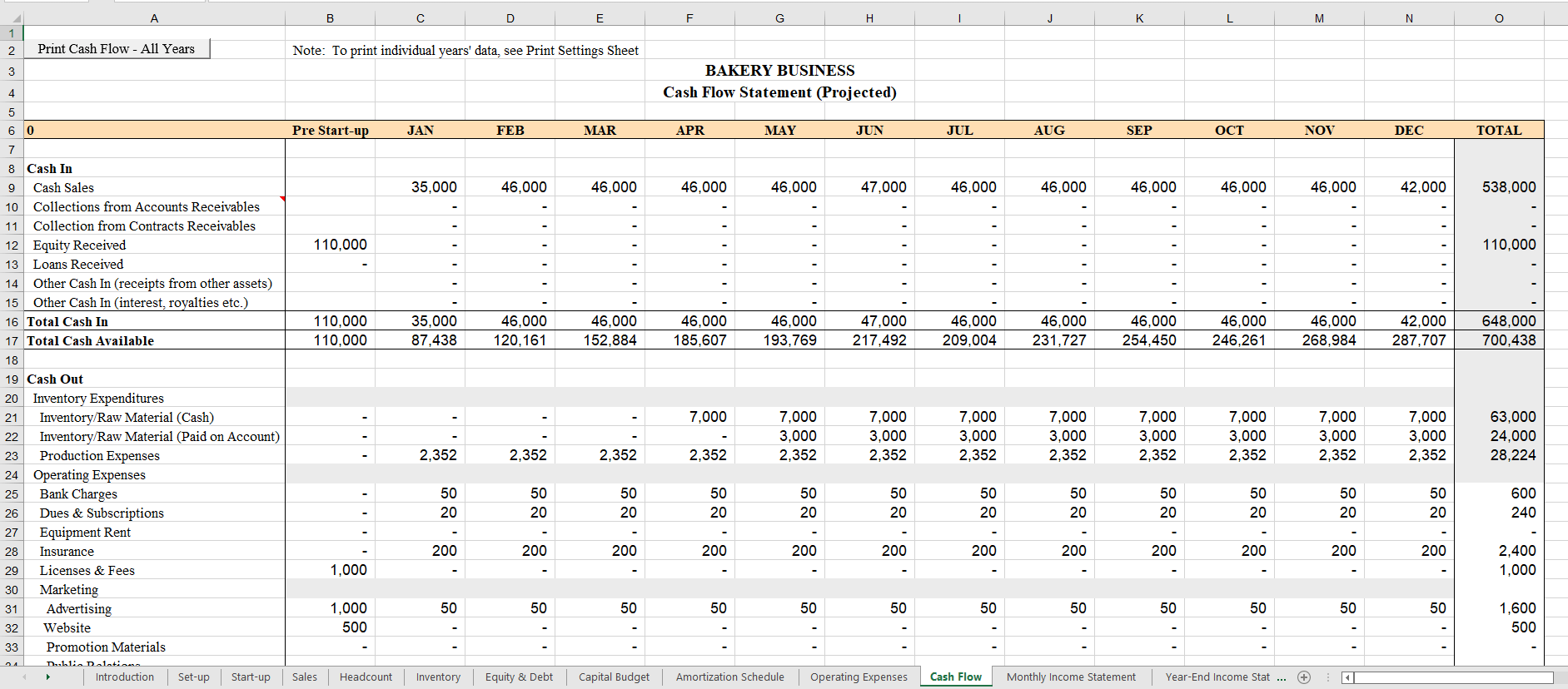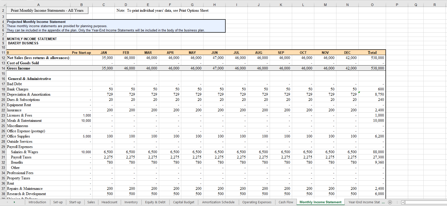 Bakery Business Excel Fill-In-the-Blank Financial Worksheet with instructions to help you calculate your finances Sample Pages. Click on Images to Enlarge.