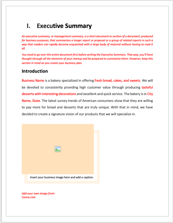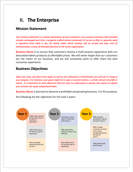 A 47-page fully editable Bakery Business Plan Template in Microsoft Word Sample Pages. Click on Images to Enlarge.